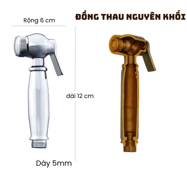 Bộ Vòi Xịt Vệ Sinh ĐỒNG THAU ĐÚC NGUYÊN KHỐI Mạ Crom - VX-06